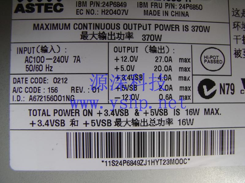 Shanghai IBM X255 Server Power Supply X255 Power Supply 24P6849 24P6850
