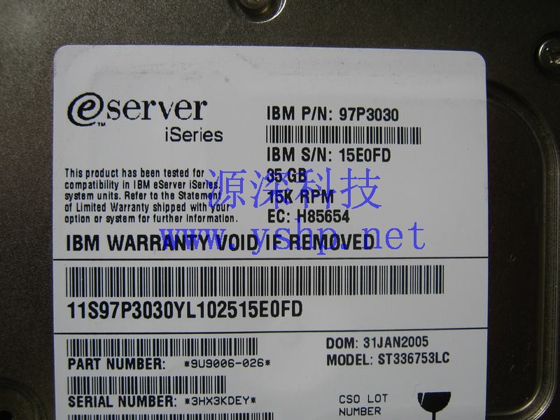 Shanghai IBM original Server Hard disk 35G 15K SCSI Hard disk U320 97P3030