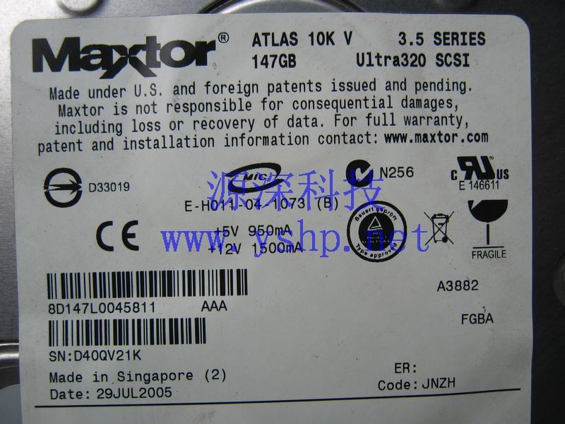 Shanghai Maxtor 迈拓 SCSI Server Hard disk Hot swappable 147G 3.5 ATLAS 10K V