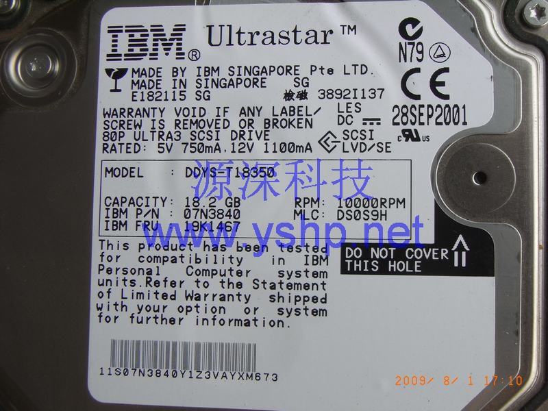 Shanghai IBM Server Hard disk 18G SCSI Hard disk IBM 18.2G 10k Hard disk 19K1467 07N3840